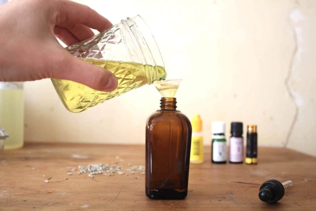 - Pour the mixture into a dark glass dropper bottle to protect it from light, which can degrade some of the oils over time.