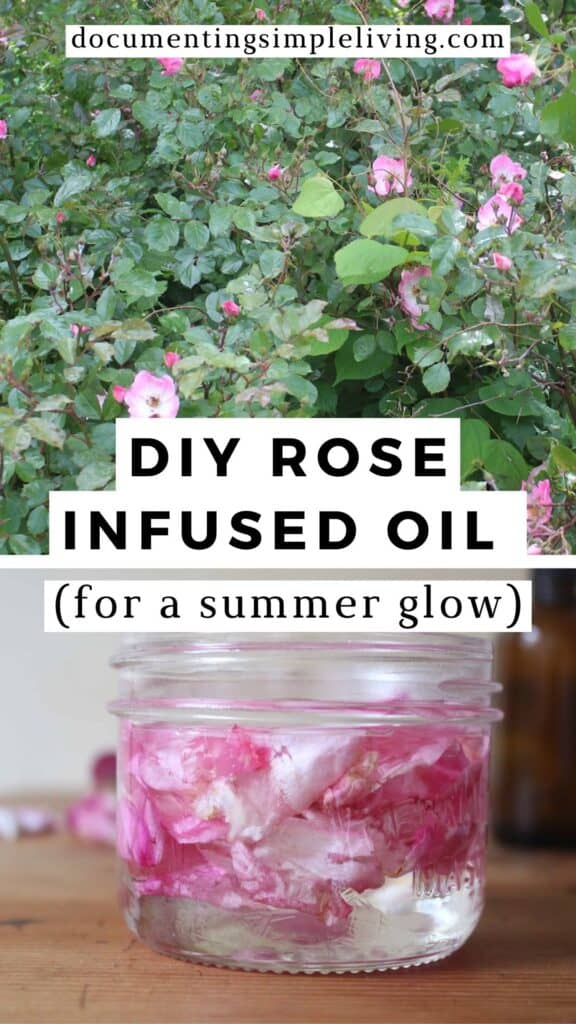 You can harvest fresh roses and use the petals to make this oil. You can also wait for the rosehips to appear after the flowers have died back and use them.