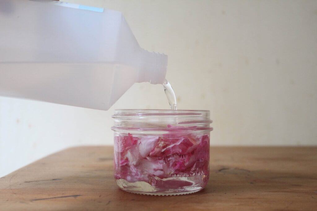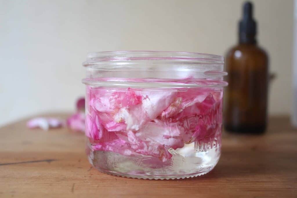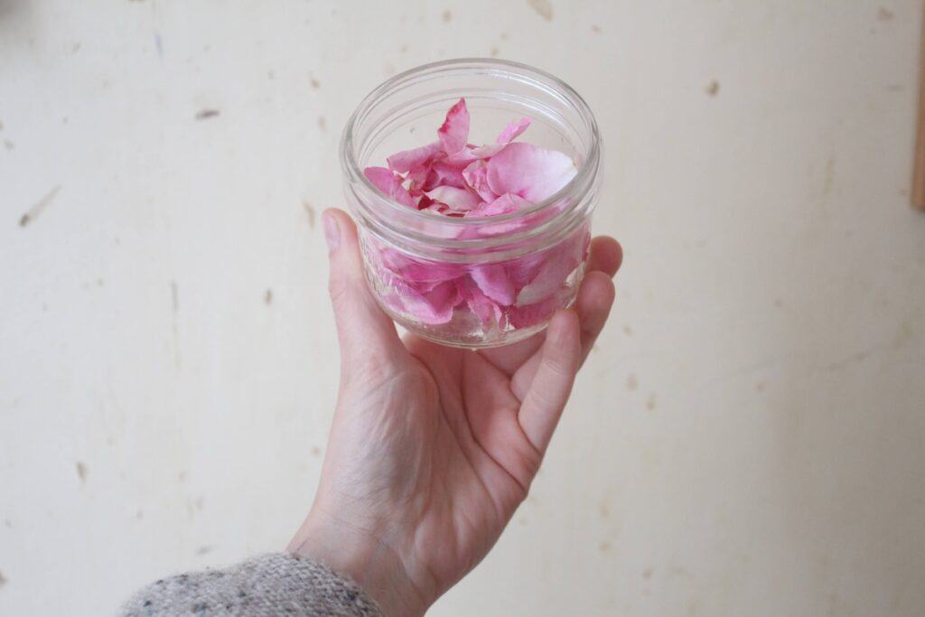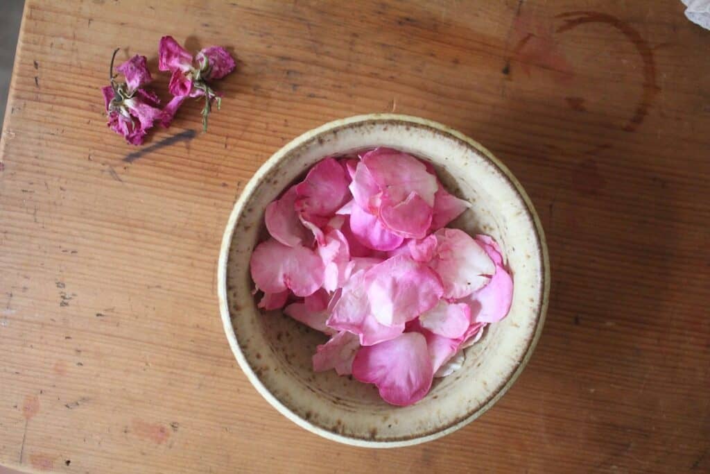 If you use fresh, foraged rose petals, let them sit out to dry for a day or so, allowing some of the moisture to evaporate.